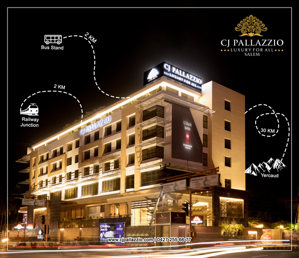 CJ Pallazzio a “Business Class Luxury” hotel offers comfortable stay to it’s guests with it’s chic and stylish rooms, which includes 12 Suites, 20 Premium rooms and 40 Executive rooms. 5 Multipurpose Banquet halls capable of accommodating more than 800 guests. Saffron the Multi Cuisine restaurant at the lobby level adds to the comfort. FlyingMonk the Bar says it all with a variety of imported and domestic liquors to opt from.